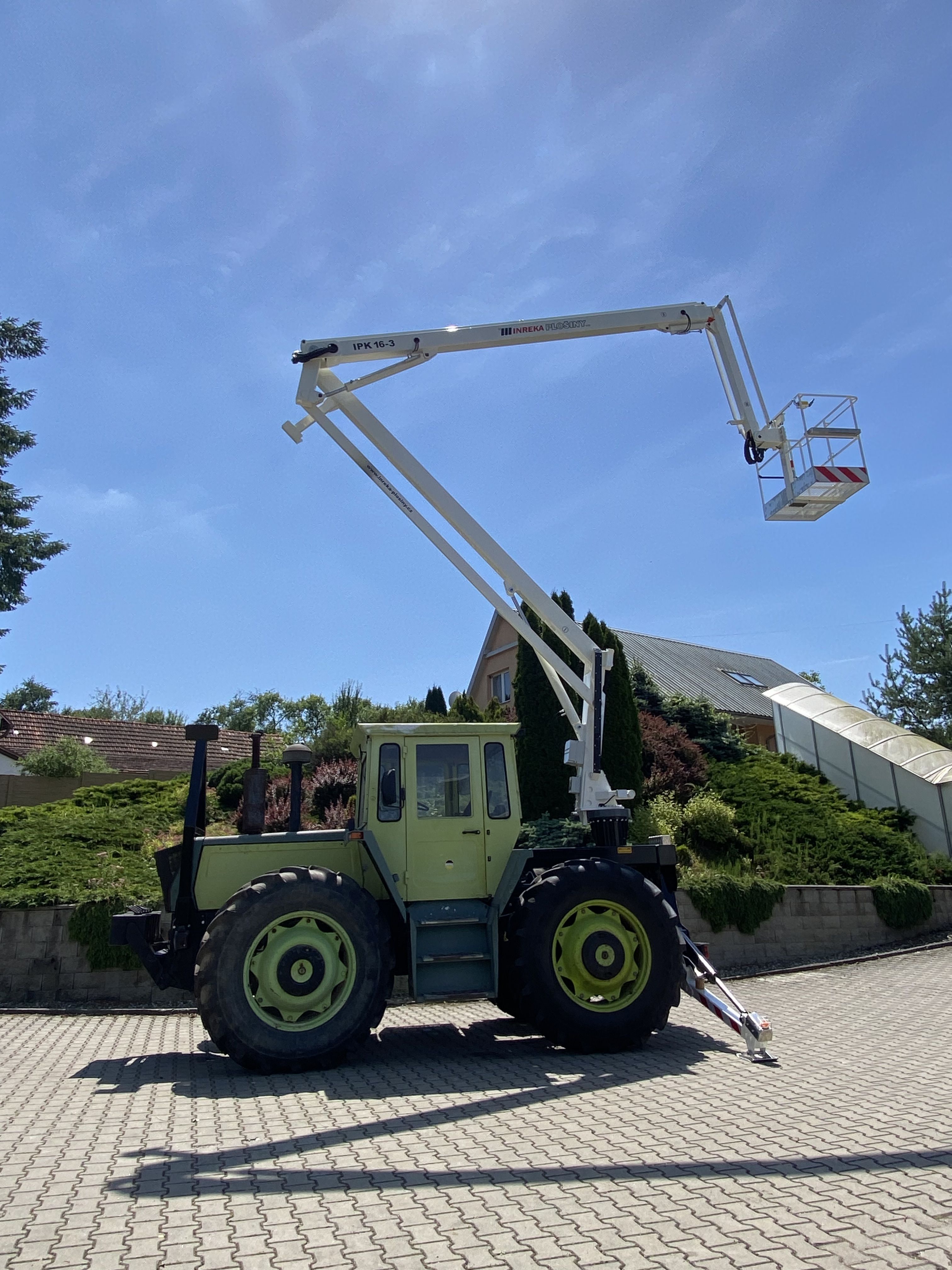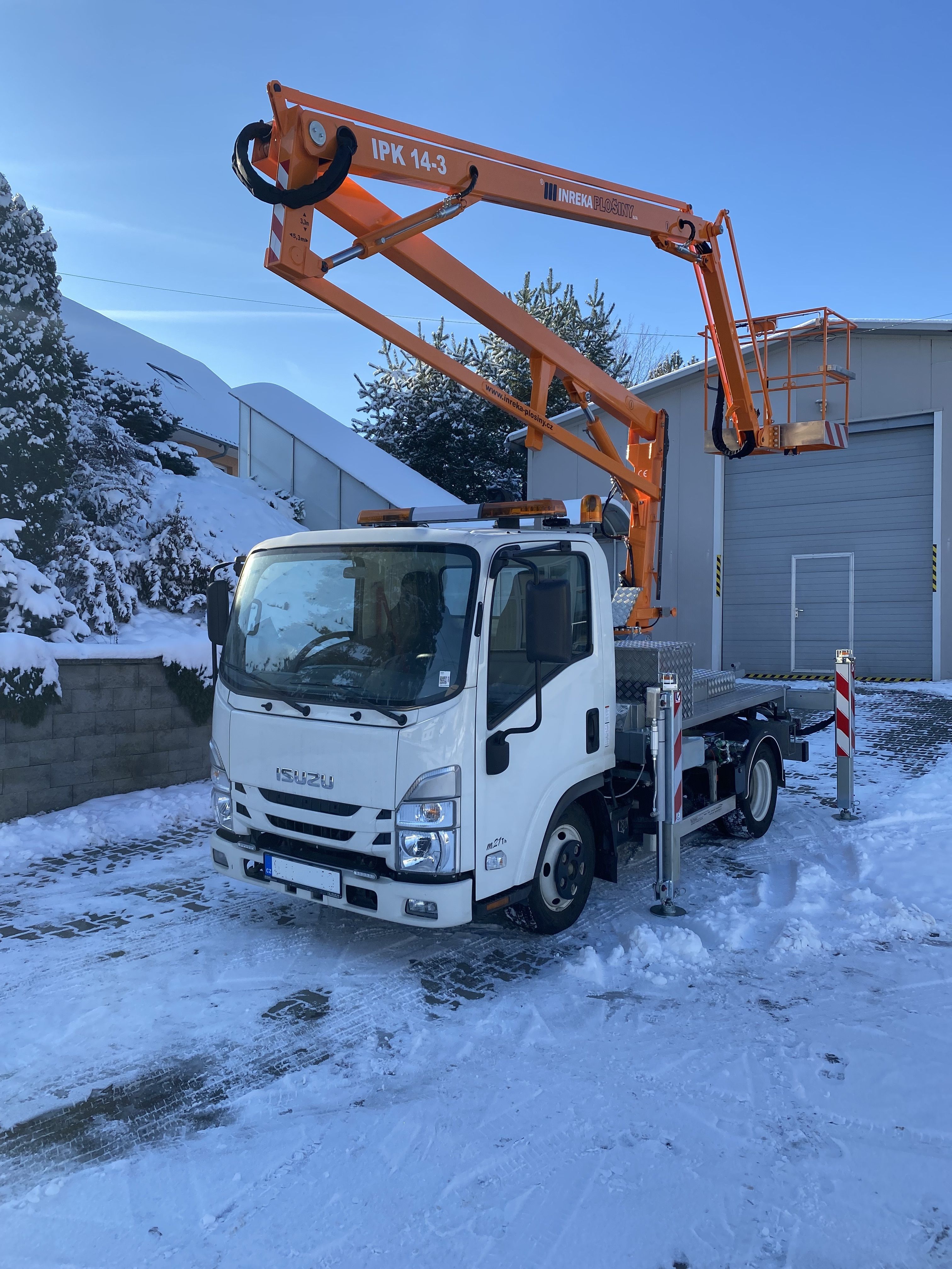 Naše společnost dodala kloubovou pracovní plošinu IPK 16-3, která je koncipována jako výměnná nástavba, na podvozku MERCEDES - BENZ pro zahraničního zákazníka, který se zabývá elektromontážní činností.